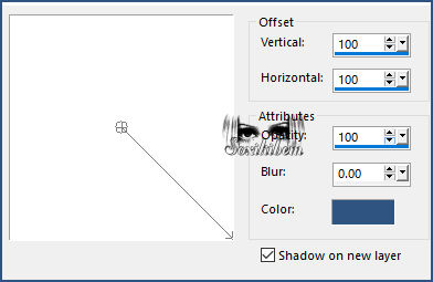13 - Ativar a Layer Raster 3. Effects > 3D Effects > Drop Shadow: 15, -11, 50, 20, cor: #000000 (preta). Layers > Duplicate. Fechar a visibilidade da Layer Copy of Raster 3.