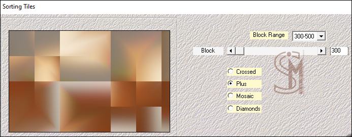 4 - Ative agora a layer Copy of Raster 1. Effects > Plugins > Mehdi > Sorting Tiles: