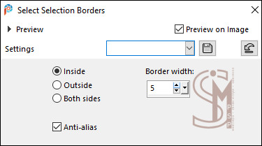 40 - Selections > Select All. Image > Add Borders > Symmetric: 15px na Cor do Foreground: #5c1a06 Selections > Invert.