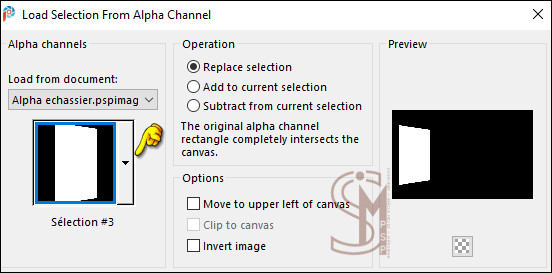 15 - Layers > New Raster Layer. Selections > Load/Save Selections > Load Selection from Alpha Channel: Sélection #3