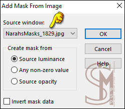 30 - Ativar a layer Merged. (Topo) Layers > New Raster Layer. Pintar com a cor #ffffff (Branco) Layers > New Mask Layer > From image: NarahsMasks_1829