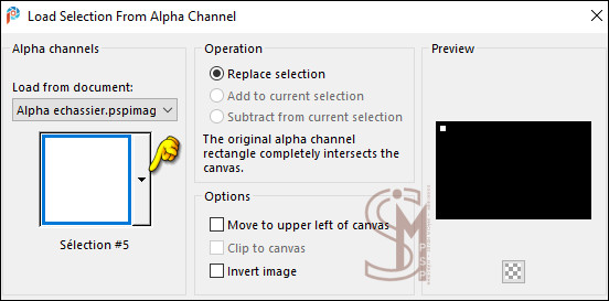 32 - Layers > New Raster Layer. Selections > Load/Save Selections > Load Selection from Alpha Channel: Sélection #5