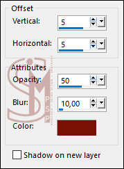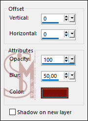 7 - Selections > Invert. Effects > 3D Effects > Drop Shadow: Color > Foreground: #7b1105