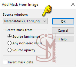 11 - Coloque a cor #ffffff (branco) no Foreground. Layers > New Raster Layer. Pintar essa layer com a cor #ffffff. Layers > New Mask Layer > From image: NarahsMasks_1779