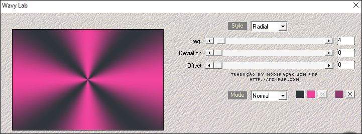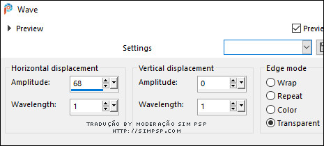 02 - Abra uma imagem transparente de 900x600px. Effects > Plugins > Mehdi > Wavy Lab: Coloque em ordem das cores 2 e 1 e a mantenha a 3ª cor.
