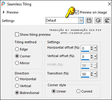 11- Layers > Duplicate. Image> Resize: 60% - resize all layers não marcado. Effects > Image Effects > Seamless Tiling: Default