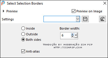 Image > Add borders > Symmetric: 1px na cor #000000 (Preto). Selections > Select All. Image > Add borders > Symmetric: 40 px na cor #ffffff (Branco).