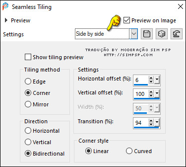 15- Ativar a layer Raster 2. Effects > Image Effects > Seamless Tiling: Side by Side