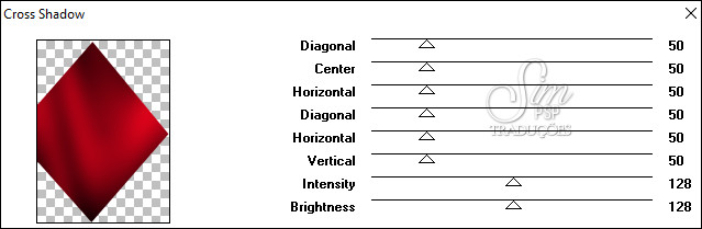 Pintar a seleção com a cor do Background para #62000b Effects > Plugins > Graphics Plus > Cross Shadow: Default