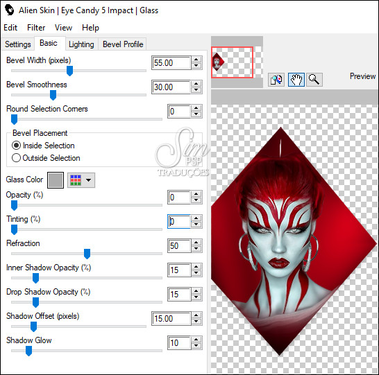 15- Effects > Plugins > Alien Skin Eye Candy 5 Impact > Glass: Settings: Clear