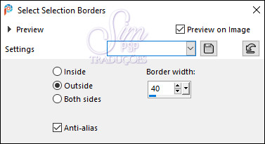08- Image > Resize: 90% - all layers não marcado. Com a ferramenta Magic Wand > Tolerance e Feather: 0, clique na área transparente para selecionar: