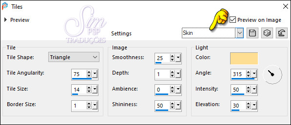 16- Effects > Texture Effects > Tiles: Skin Você pode mudar a cor de acordo com suas cores escolhidas.