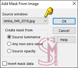 Layers > New Raster Layer. Pintar com a cor clara do Foreground. Layers > New Mask Layer > From image: letéia_049_2018