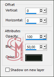 02 - Layers > New Mask layer > From image: 00MASK_BG3522 Edit > Paste as New Layer. Ativar a ferramenta Pick e configure: Position X: 21,00 - Position Y: 12,00. Pressione a tecla "M" para desativar a "Ferramenta Pick". Effects > 3D Effects > Drop Shadow: color: #000000 (preto)