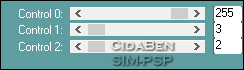 9 - Adjust > Sharpness > Sharpen. Effects > 3D Effects > Drop Shadow: 0, 0, 100, 50, Color #ffffff (branco).