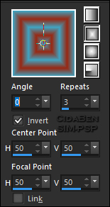 imagem transparente de 900 X 600 px. Angle 0 > Repeats 3 > Invert Marcado.