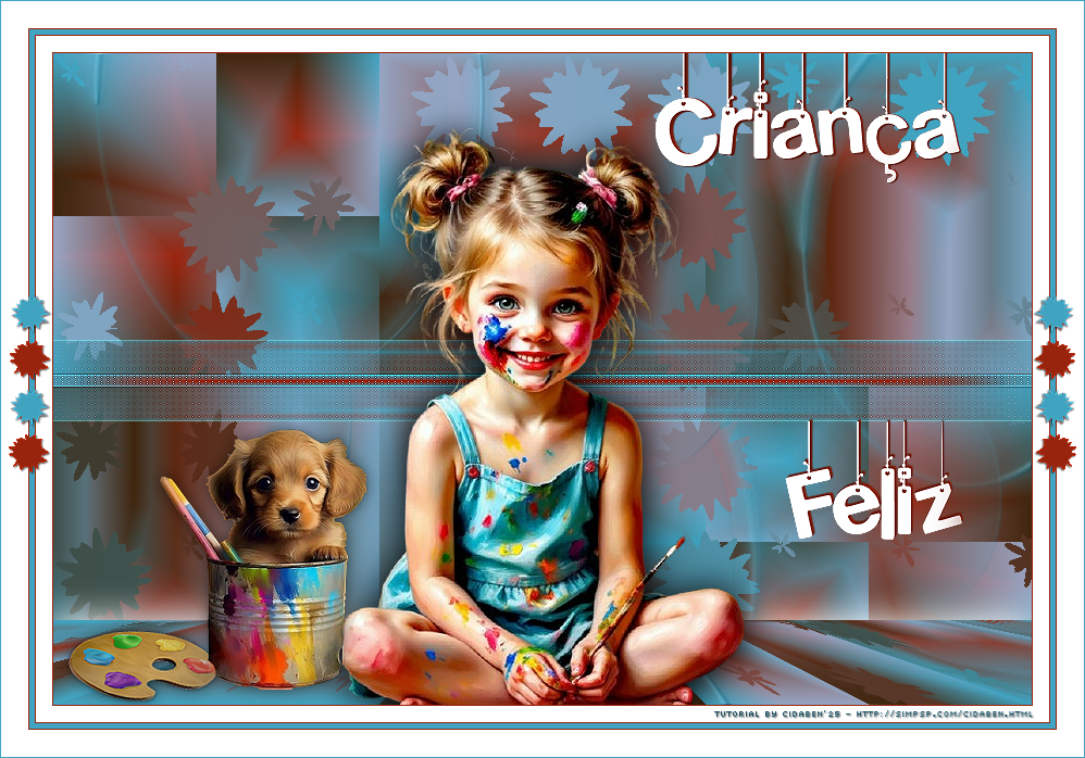 11 - Edit > Copy no tube Decor1_CriançaFeliz_CBen. Edit > Paste As New Layer. Pick Tool > Position X: -1,00 > Position Y: 331,00 Adjust > Sharpness > Sharpen. Effects > 3D Effects > Drop Shadow > como preferir.