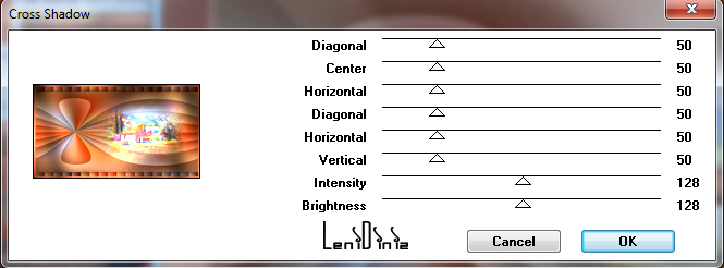 18- Adjust > Sharpness > Sharpen. Effects > Plugins > Graphics Plus > Cross Shadow: Default