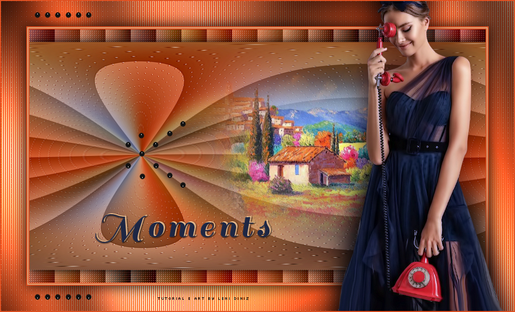 19- Selections > Invert. Effects > 3D Effects > Drop Shadow: 0 > 0 100 > 40, color: #000000. Selections > Select None. 20- Edit > Copy no tube principal. Image > Resize se for necessário. Posicionar à direita. Adjust Sharpness > Sharpen Effects > 3D Effects > Drop Shadow como preferir. 21- Edit > Copy no decor_moments_leni-1. Com a Ferramenta Pick Tool, posicionar: Position X 245 Position Y 237 22- Edit > Copy no decor_moments_leni_2. Com a Ferramenta Pick Tool, posicionar: Position X 66 Position Y 22 23- Edit > Copy no título_moments_leni Edit > Paste As New Layer Posicione como preferir. Effects > 3D Effects > Drop Shadow:1 > 1 > 80 > 3, color: #000000. 24- Image > Add Borders > Symmetric: 2 px - color: foreground. 25- Aplicar sua marca d'água ou assinatura. File > Export > JPEG Optimizer. ![]()