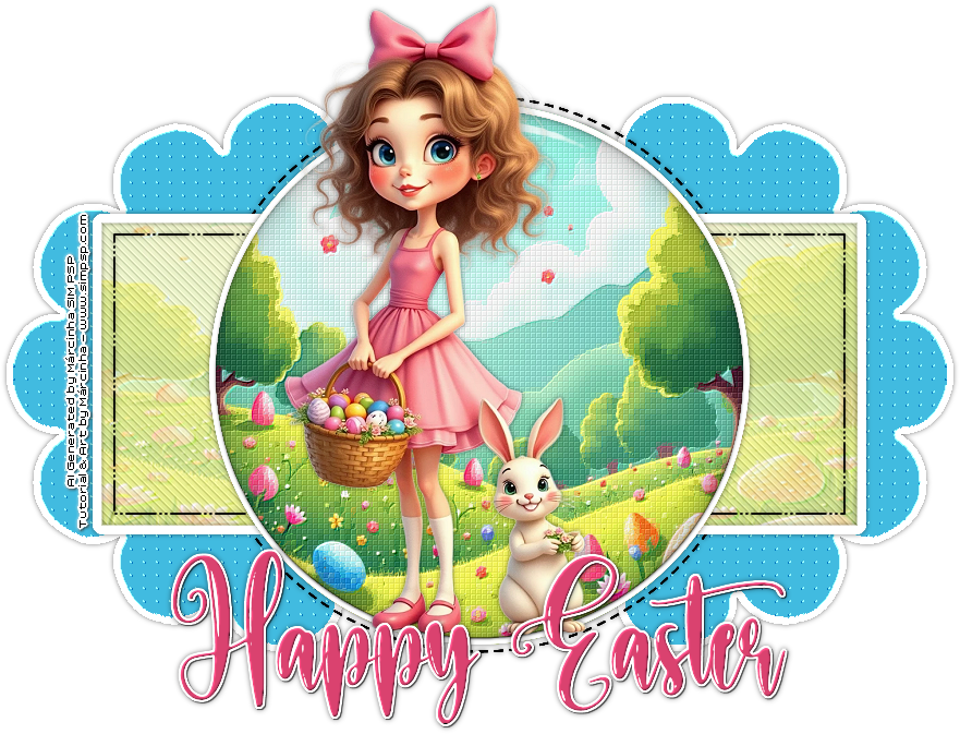 31 - Ative o arquivo 010_TubeIA_PersonagemPascoa. Edit > Copy. Volte ao trabalho... Edit > Paste as New Layer. Image > Resize de 58%, se estiver usando o tube do material. Adjust > Sharpness >