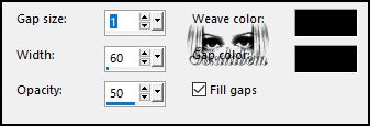 17 - Ativar a layer Raster 2. Effects > Texture Effects >Weave com a cor preta.