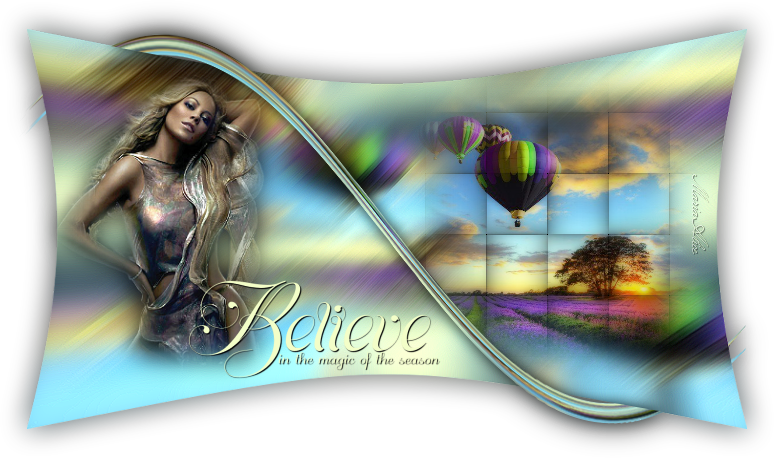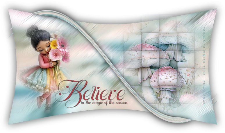 20 - Edit > Copy no LNL WORDART BELIEVE. Edit > Paste a New Layer. Image > Resize: 40%, all layers desmarcado. Colorir e posicionar como preferir. Aplique Drop Shadow a gosto.