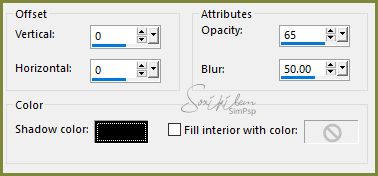 35 - Copy no tube MR_Drmatic Dance e paste a new layer. Posicione a esquerda ou como preferir. 36 - Effects > 3D Effects > Drop Shadow: 0, 0, 100, 65 ou ao seu gosto. 37 - Finalize com uma bordinha de 1 px com a cor usada no foreground. 38 - Copy no tube brush_barra_de_texto_transparente e paste a new layer. 39 - Effects>Image Effects>Offset como no print.