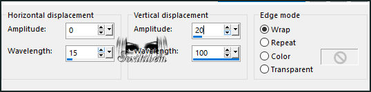 10 - Effects > Geometric Effects > Perspective - Horizontal: 98, Transparent. Effects > Geometric Effects > Perspective - Horizontal: -98, Transparent. Effects > Distortion Effects > Wave.