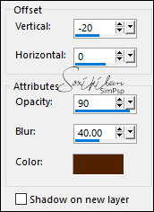 Effects > 3D Effects > Drop Shadow: -20, 0, 90, 40, color 1.