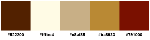 1 - Open the material on the PSP, duplicate and close the original. Choose 5 colors to work with. Color 1: Foreground #522200 Color 2: Background #fffbe4 Color 3: #c8af85 Color 4: #ba8933 Color 5: #791000