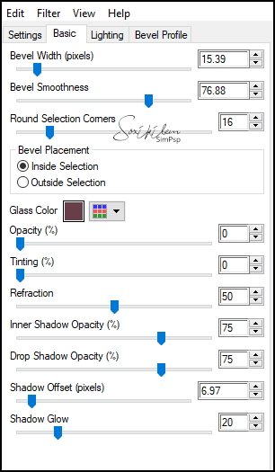 17 - Somente ativar a Layer Copy of Raster 2. Layers > New Raster Layer. Selections > Load/Save Selections > Load Selection fromAlpha Channel: Selection #5. Effects > Plugins > Alien Skin Eye Candy 5 Impact > Glass: GlasTJM_Xiki, ou use as seguintes configurações: