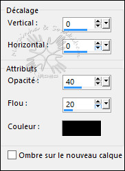 Effets > Effets 3D > Ombre portée: 0/0/40/20/Couleur: #000000