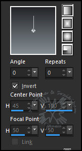 02- Abrir uma transparência de 650x450px. Pinte com o gradiente Linear - Angle: 0 - Repeats: 0 - Invert: Marcado