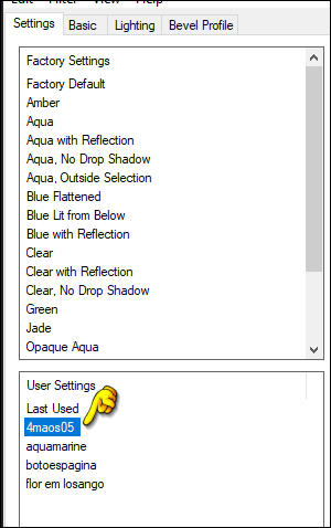 24- Alien Skin Eye Candy 5 Impact > Glass: 4maos05.f1s. *Para combinar com a cor que esta usando mude a cor na aba