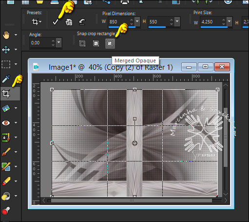 20- Clique na Ferramenta Crop Tool > Merged Opaque e clique em aplicar.