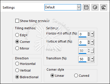 15- Ativar e abrir a visibilidade da layer "Copy of Raster 1". Effects > Image Effects > Seamless Tiling: Default.