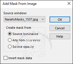 13- Layers > New Raster Layer. Pintar esta layer com a cor do foreground. Layers > New Mask Layer > From Image: NarahsMasks_1537.