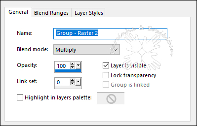 26- Edit > Copy no tube Flor Edit > Paste a New Layer. Posicione à direita. Layers > Properties > General: