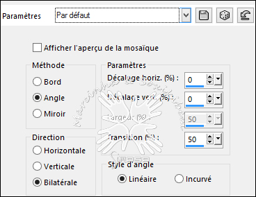 -- 04 -- Effets > Effets d'image > Mosaique sans jointunres: par défaut.