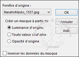 -- 13 -- Calques > Nouveau calque raster. Le remplir avec la couleur > premier plan: #524644. Calques > Nouveau calque de masque > A partir d'une image > NarahsMasks_1537.