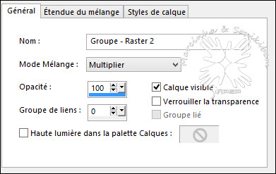 -- 14 -- Calques > Dupliquer. Calques > Fusionner > Fusionner le calque de dessous. Calques > Propriétés > Général > Mode Mélange > Multiplier.