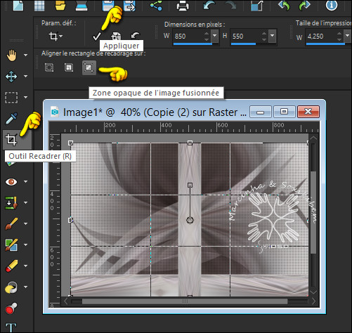 -- 20 -- Outil Recadrer > Zone opaque de l'image fusionnée > Appliquer.