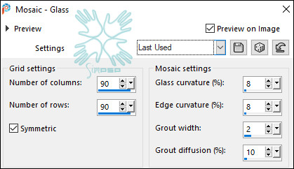 layers não marcado. Effects > Texture Effects > Mosaic Glass: