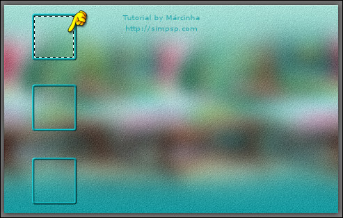 12 - Selections > Select None. Com a ferramenta Magic Wand > Tolerance e Feather em 0, clique dentro do primeiro quadro para selecionar: