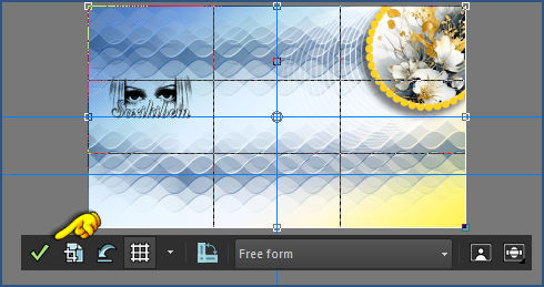 14 - Ativar a Layer Raster 3. Layers > Merge > Merge Down. Pick Tool: Position X: 412, Position Y: -41. Ferramenta Crop Tool > Merge Opaque > Apply.