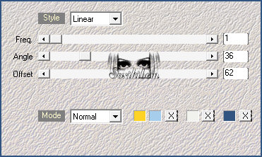 2 - Abra uma transparencia de 850x500px. Plugin Mehdi > Wavy Lab 1.1. Sequencia das cores: Foreground, Background, Cor 3 e Cor 4.