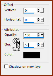 14- Layers Duplicate. Image > Mirror > Mirror Vertical. Layers > Merge > Merge Down. Effects > 3D Effects > Drop Shadow > cor Preta e New Layer desmarcado: