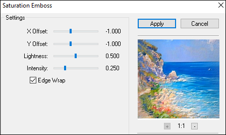 20 - Effects > Plugins > FM Tile Tools > Saturation Emboss: