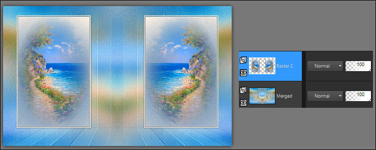 arquivo misted 197PaisagemByPqnaAlice. Volte a imagem que estamos trabalhando... Edit > Paste Into Selection. Selections > Select None.