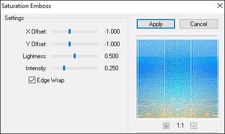 32 - Effects > Plugins > FM Tile Tools > Saturation Emboss: